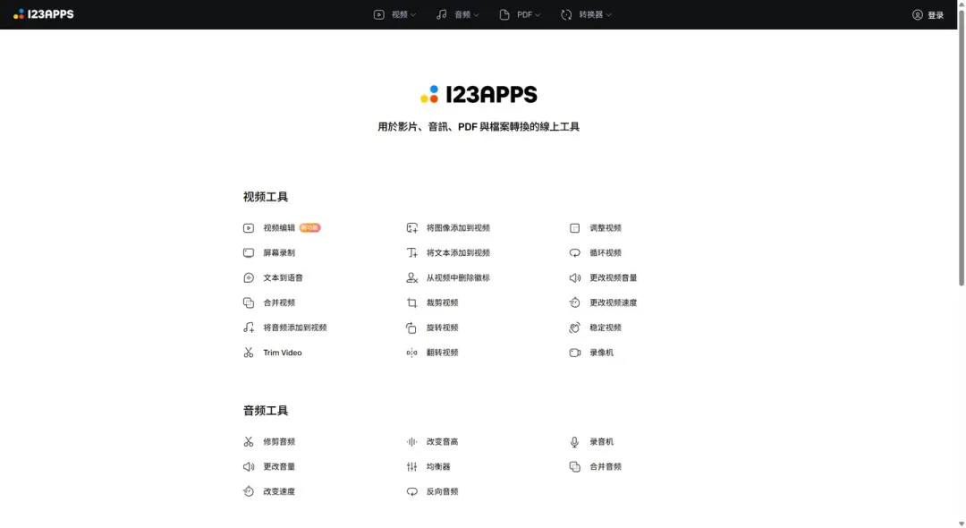 这个工具站基本包含日常工作和学习要用到的所有小工具,能处理包括视频、音频、PDF、办公文档等文件。